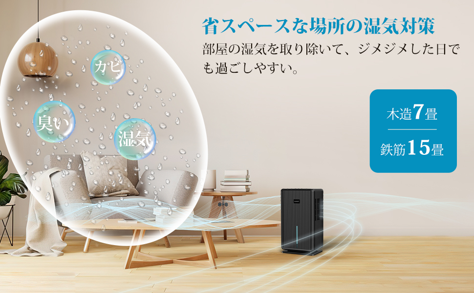 「エアコンの除湿じゃ冷えすぎる…」という人にとって、心地よく湿度だけコントロールできる存在です。