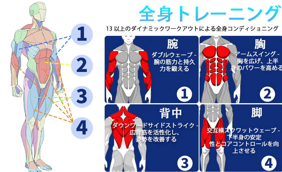 | Lv1 | ダブルウェーブ×20秒×5セット | 上半身の基本刺激 |