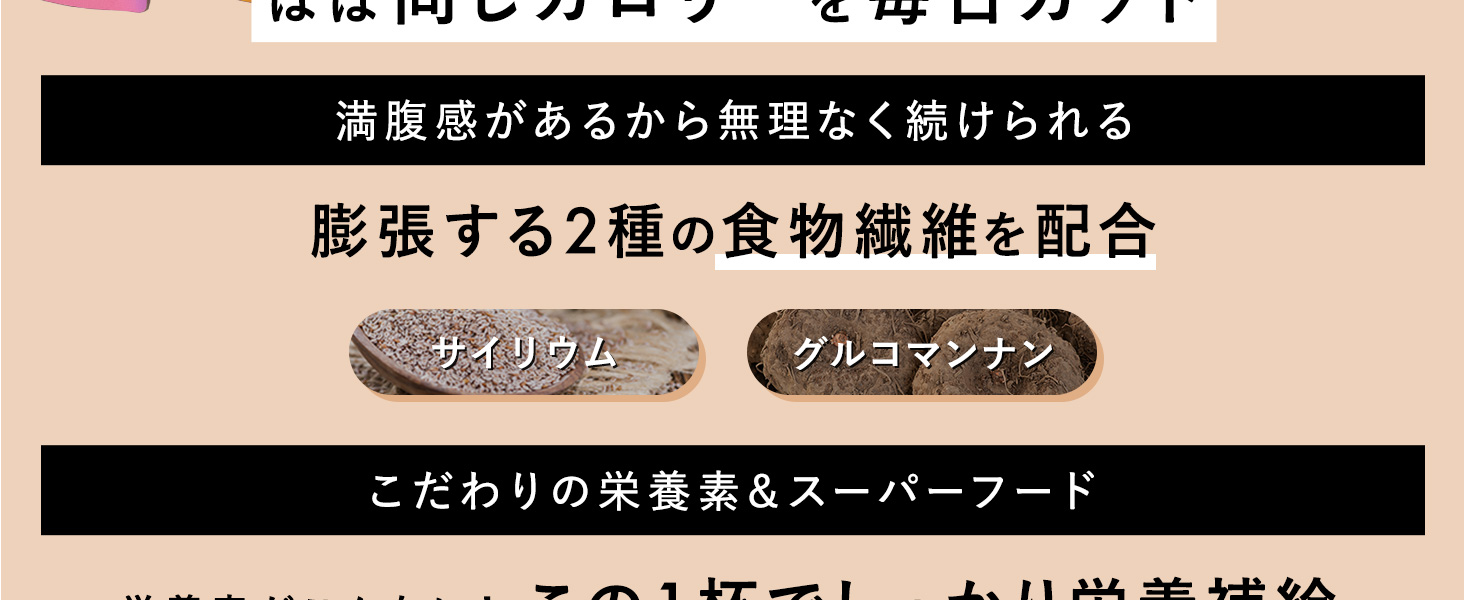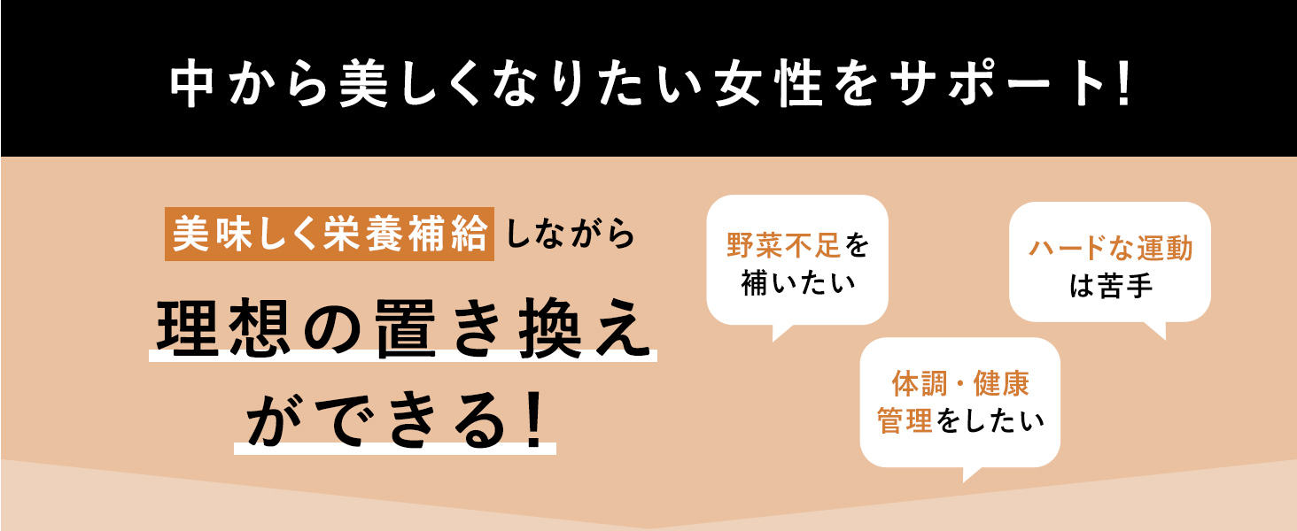 「置き換え=ガマン」だった常識をくつがえす、美味しさと安心成分を兼ね備えた一杯です。
