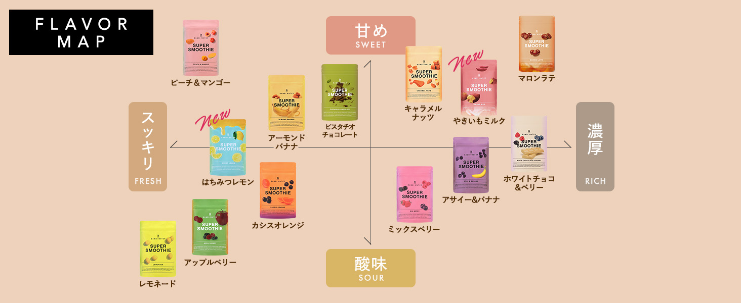 「粉っぽい」「人工的な甘さ」など、置き換えスムージーにありがちなデメリットを見事に回避。