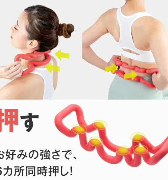 背中や首の筋肉をほぐす指圧代用器で、2WAY仕様により使用する部位に合わせて調整できます。特にデスクワークや長時間の同じ姿勢で固まった筋肉に効果的です。