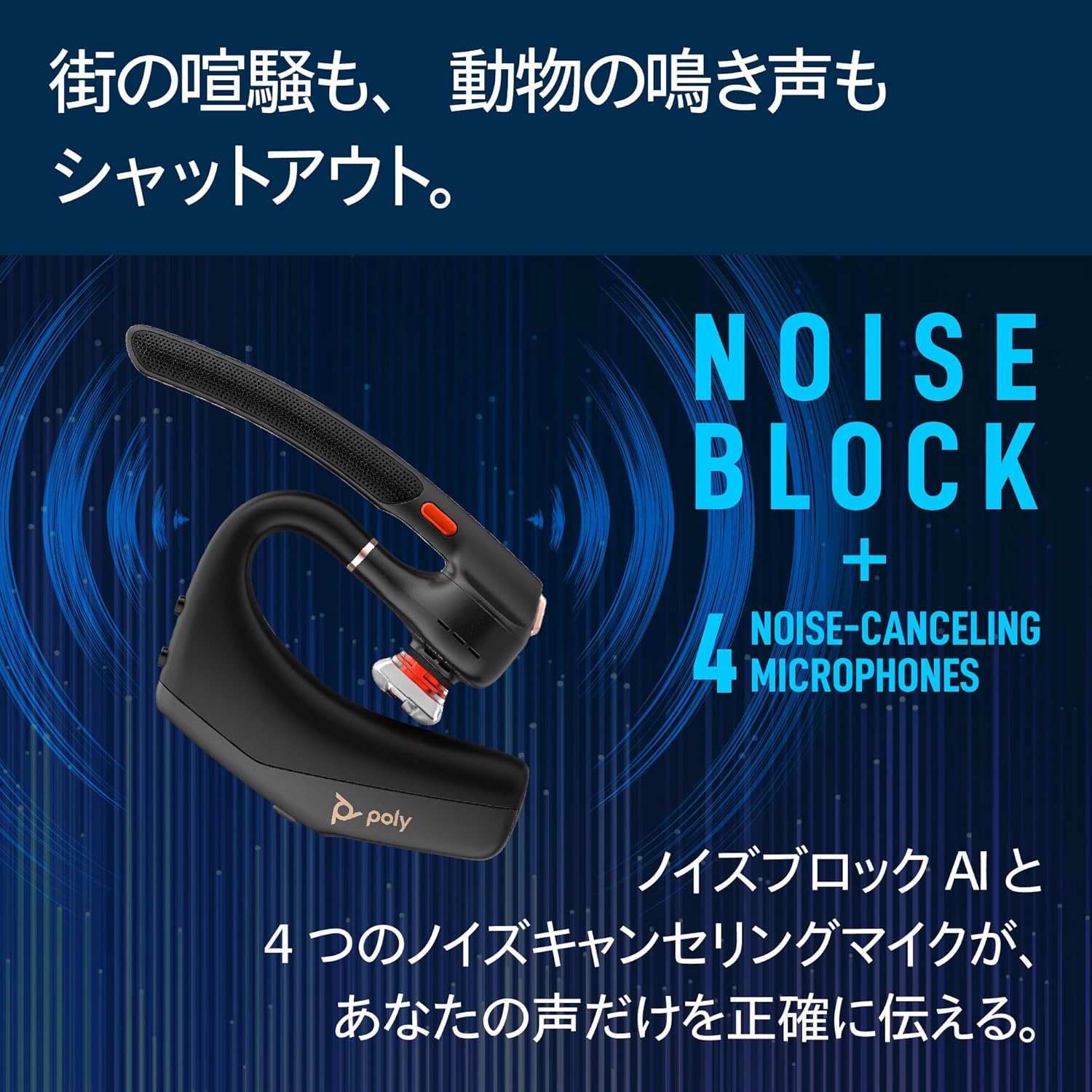 Poly独自のAI技術 NoiseBlockAI が周囲の雑音を分析・除去。