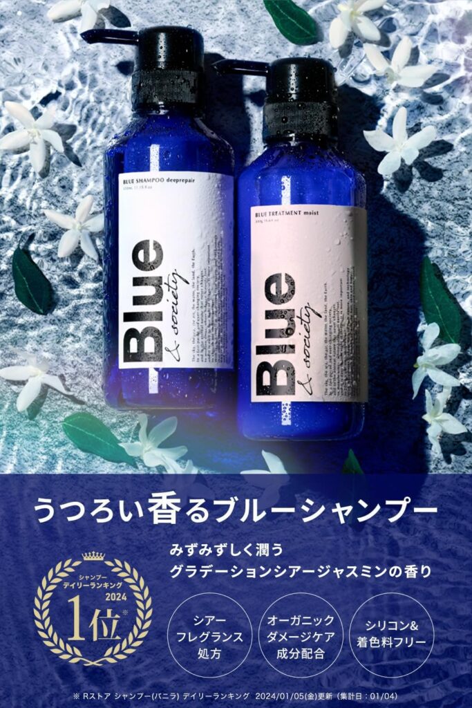 そんなメンズにぴったりの新定番が、**Blue & society(ブルー アンド ソサエティ)から登場した香水シャンプー(ジャスミン&ホワイトムスクの香り)**です。