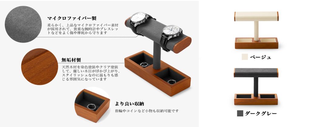 腕時計を直接置く部分には、マイクロファイバー素材が使われています。これにより、ケースやベルトを傷から守り、長く美しく使い続けることができます。