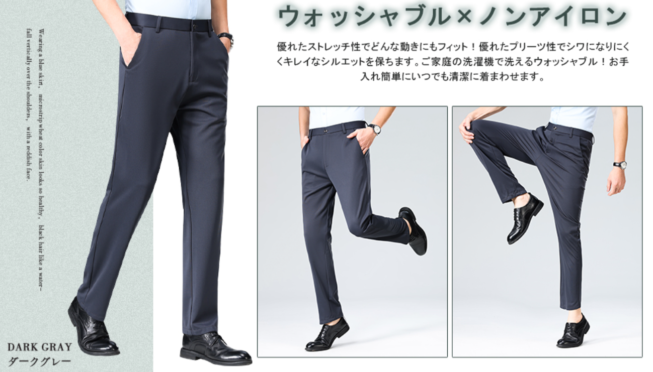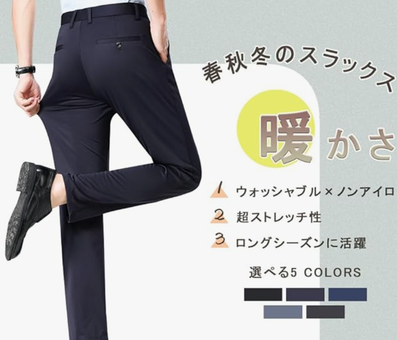 いわゆる 量販・高コスパ系ビジネスパンツ。