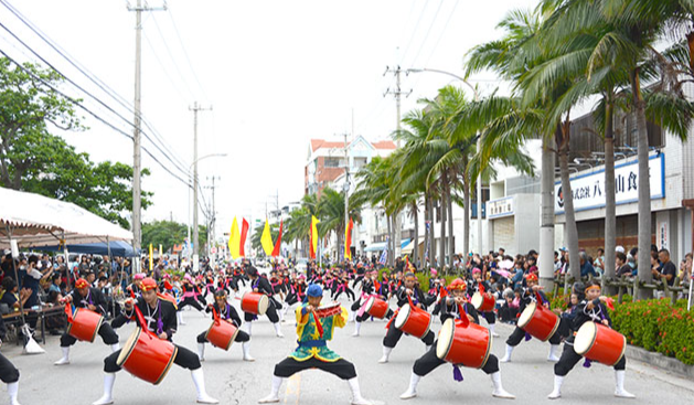 - 伝統的なエイサー祭りが熱気たっぷりに展開