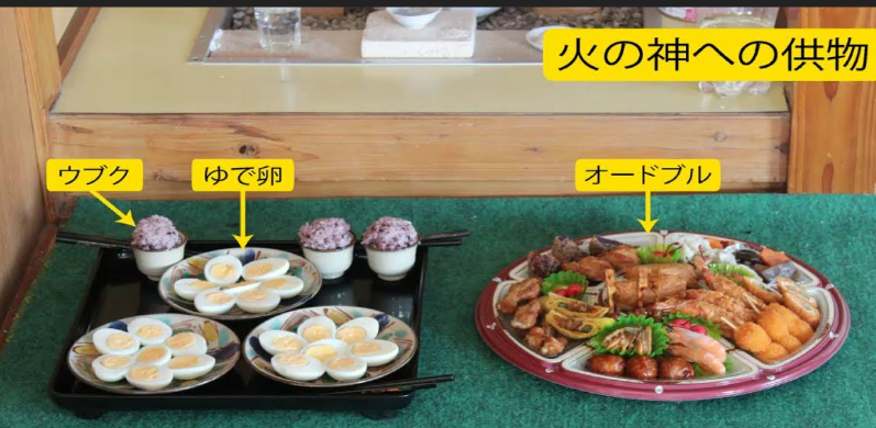 特徴: 六月ウマチーに続き、ヒヌカンや仏壇にカシチー(強飯)をお供えし豊作を神様に感謝する日です。