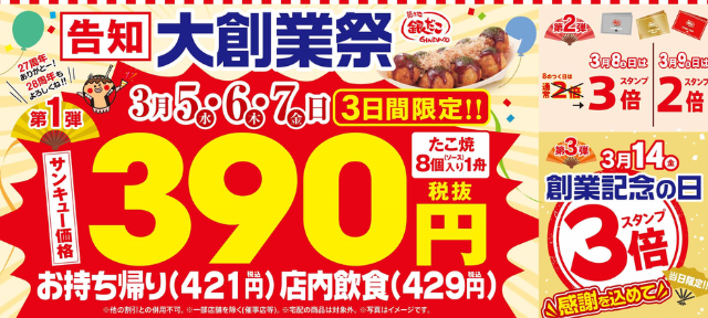 【2025年3月5日スタート】創業祭でたこ焼きが衝撃価格に!