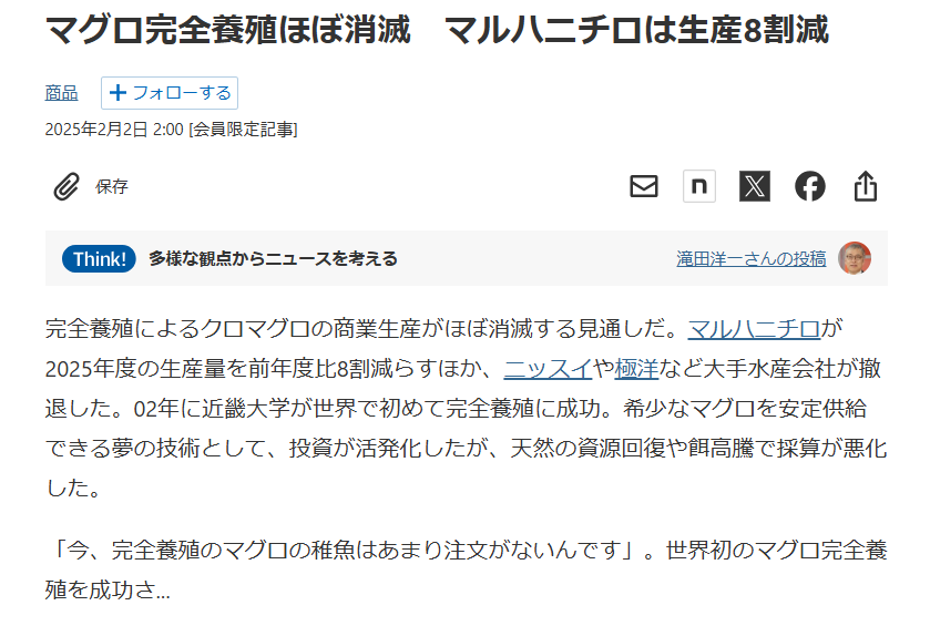 マグロ完全養殖業界の現状