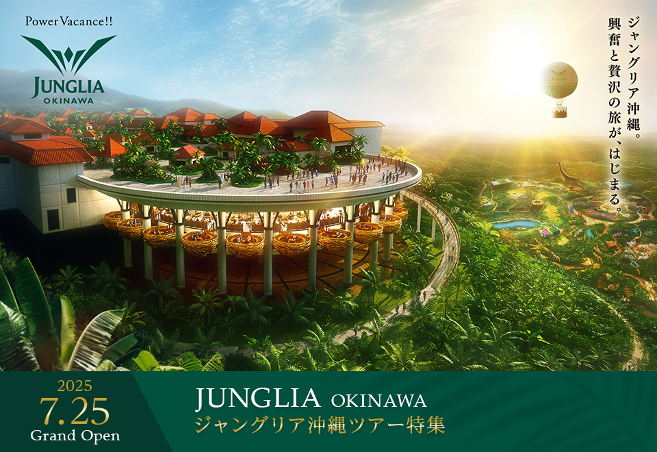 「ジャングリア沖縄」は、2025年7月25日に沖縄本島北部・今帰仁村に開業予定の日本初の“熱帯ジャングル”をテーマにした体験型テーマパークです。
