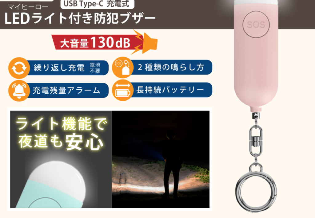 最大の理由は、スマホと同じType-Cで充電でき、電池残量が減ると音で知らせてくれる点にあります。これまでの「鳴るかどうかわからない不安」が、「数字(音)で管理できる安心」に変わるのは劇的な変化です。130dBという突き抜けるような大音量と、夜道を照らすLEDライトまで付いて2,000円前後。100均や学校配布のブザーで妥協するくらいなら、間違いなくこちらを選ぶべきです。