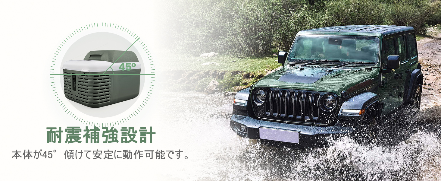 車内やバンの荷台でも45度傾いても運転継続可能。