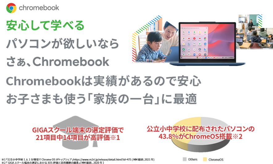 スペック表だけ見ると控えめですが、OSが「ChromeOS」であるおかげで、Windowsでは考えられないほど動作が軽快なのが最大の特徴です。