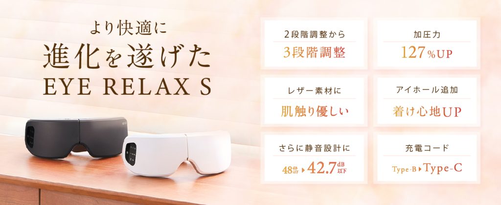 EYE RELAX Sは、温熱+音楽+コードレスという3拍子揃った、現代人にぴったりのアイケアガジェット。特に在宅ワークやPC作業が多い人には必須レベルの便利アイテムです。目元ケアの新習慣として、ぜひチェックしてみてください!