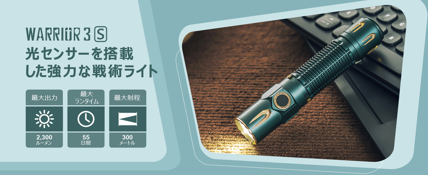 **OLIGHT(オーライト) WARRIOR 3S 懐中電灯〈夢のブルー〉**をご紹介。