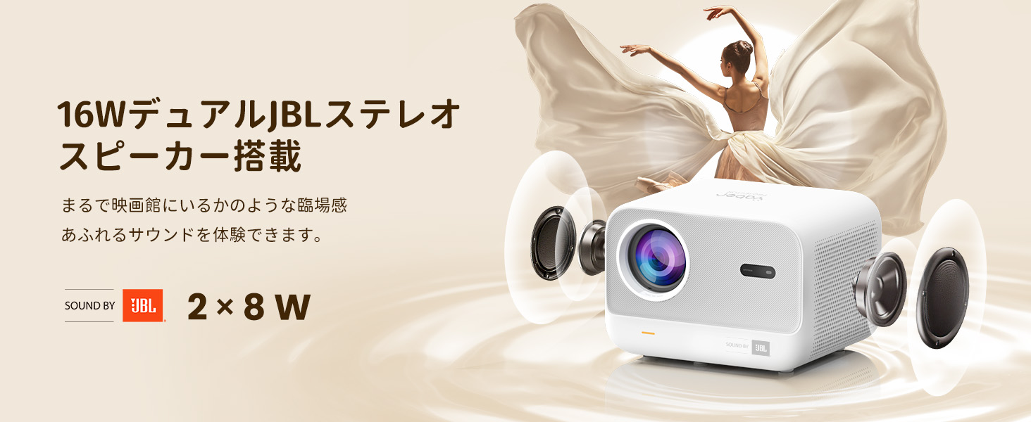 JBLならではの厚みのある低音と明瞭な中高音が映像体験をさらに引き立てます。