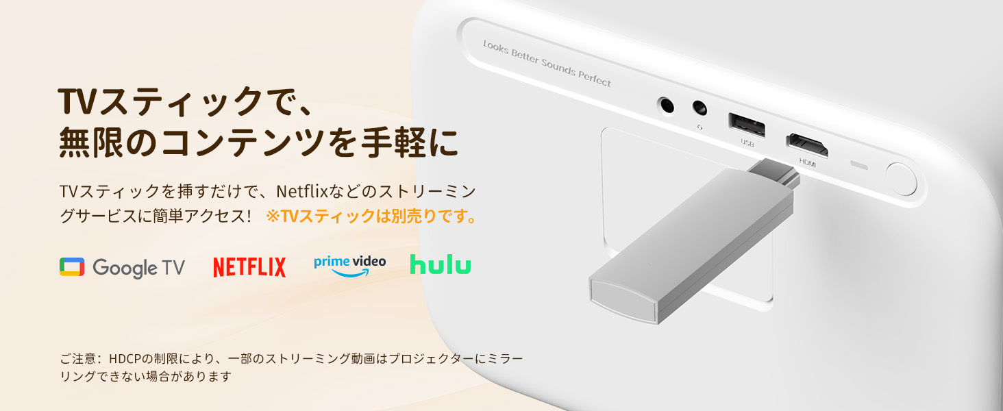 | 対応端子 | HDMI / USB / AV / 3.5mmオーディオ |