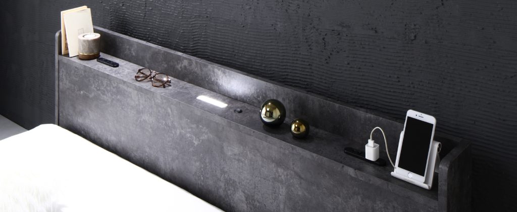「ストーングレーのカラーがシックでおしゃれ。寝室が一気に洗練された雰囲気になりました!コンセントと照明がついているのが本当に便利で、寝る前にスマホを充電したり、ちょっと本を読むのに使っています。すのこ仕様で通気性も良く、寝心地が格段に良くなりました。」