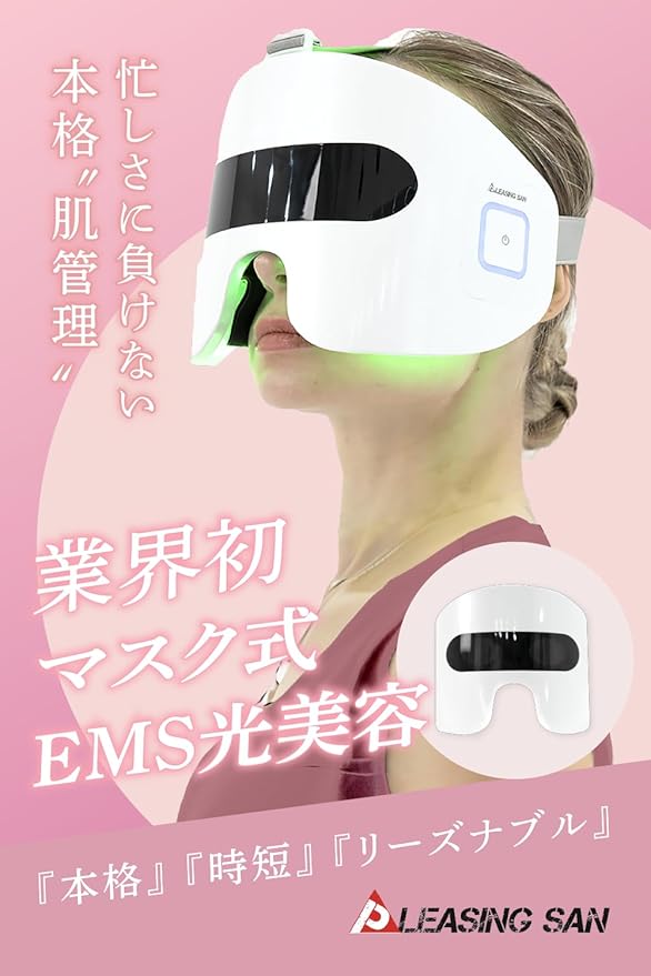 PLEASINGSANは、日本国内で企画・販売されているフェイスケア用美容機器で、特に「EMS×LED×専用設計」が特徴。