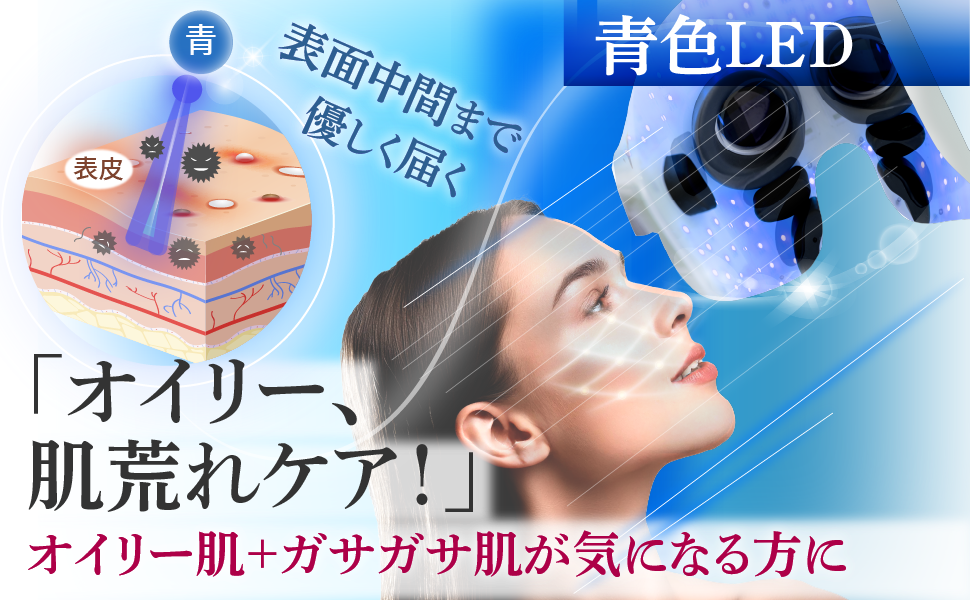 - 4種類のLED(赤・青・黄・紫)で肌悩みごとに対応