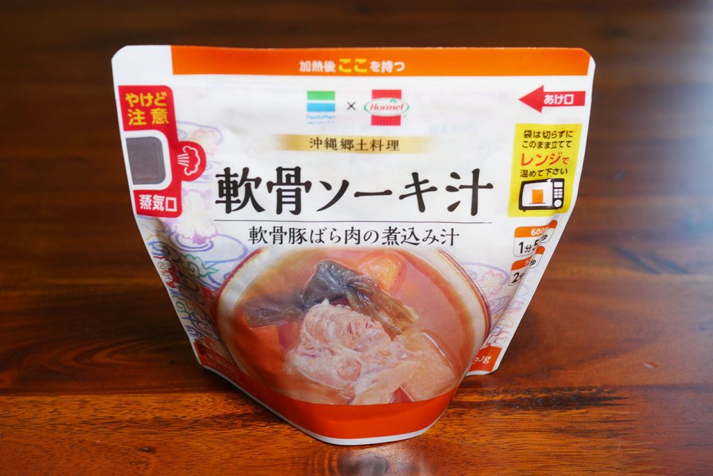 柔らかい豚の軟骨と風味豊かなスープが絶妙な一品。230g入りで398円。骨までほろほろと食べられる軟骨が絶品で、沖縄の家庭の味を楽しめます。自宅で簡単に沖縄気分を味わいたい方にピッタリ。