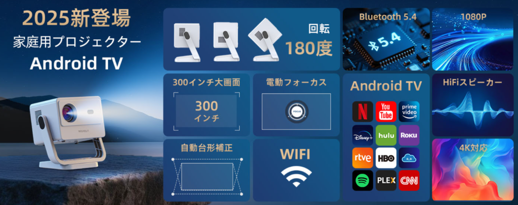 WISHOLY 家庭用プロジェクター(2025年新モデル)