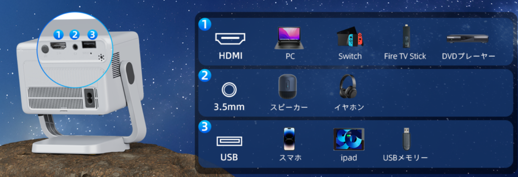 ✔ 家族共用プロジェクター