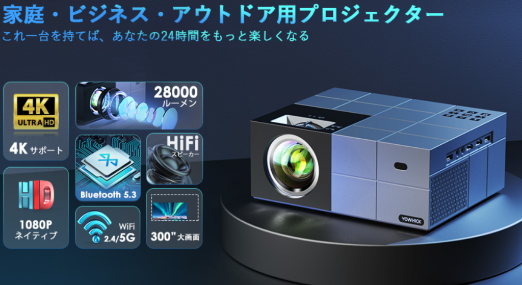 プロジェクター 家庭用おすすめ|明るさ重視ならYOWHICKが正解【28000LM・低騒音・スクリーン付】