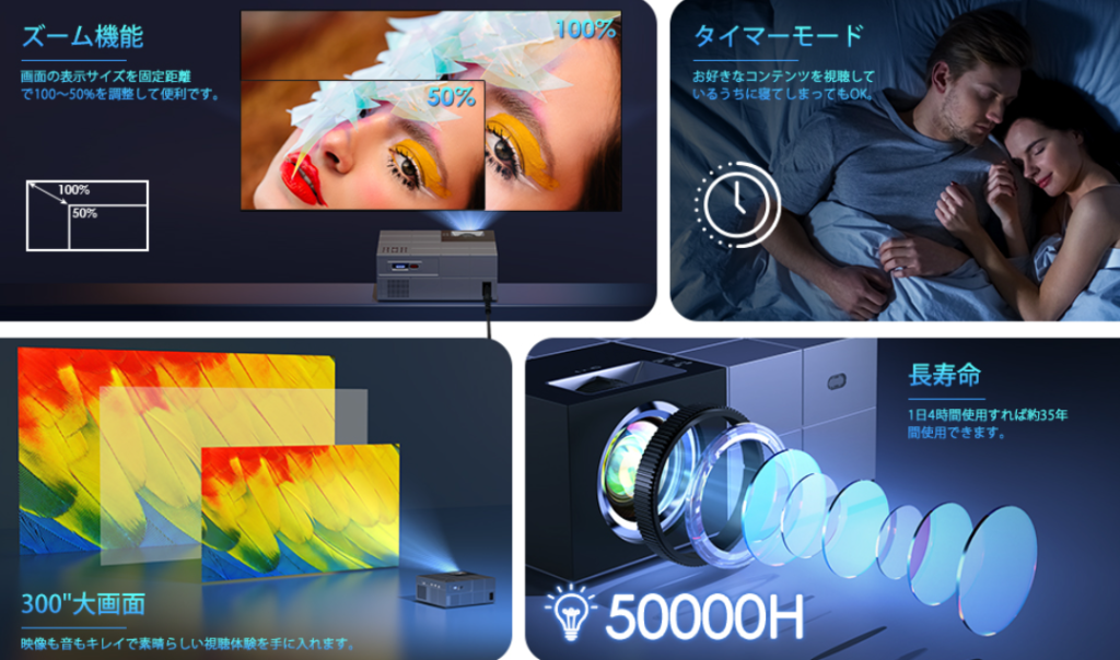 • 投影サイズ:最大300インチ