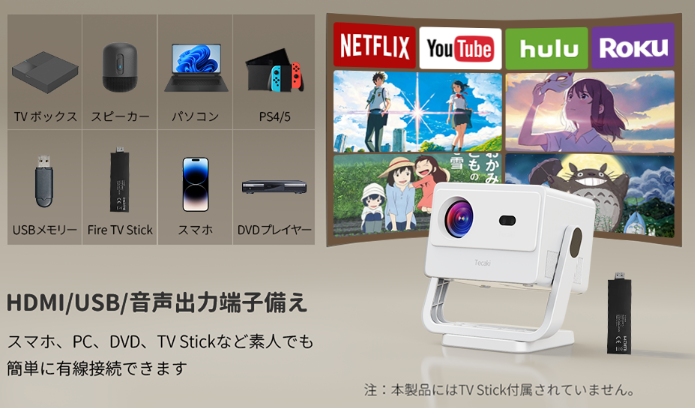 Tecaki 2025年新型 家庭用プロジェクター(180°回転・オートフォーカス搭載)
