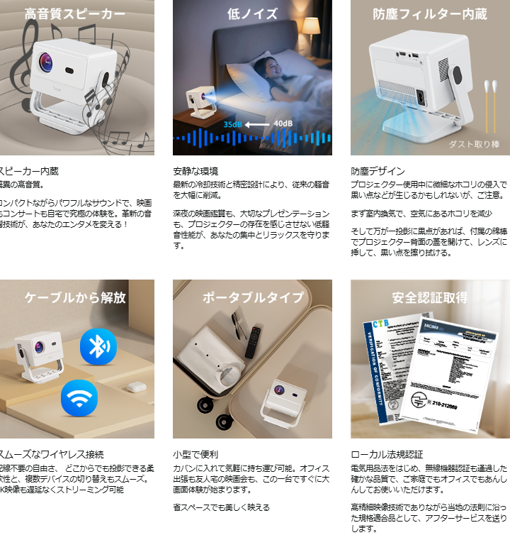 “毎日気軽に使えること”を最優先に作られた、実用派プロジェクターです。