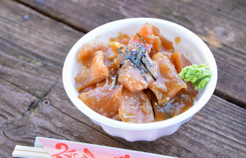 • マグロ漬け丼:地元の港で獲れた新鮮なマグロを特製タレで味付け。