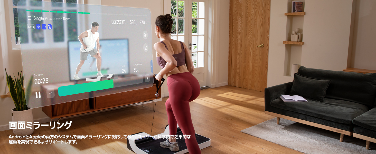 使用中は、AIがリアルタイムでフォームのチェックや負荷の調整をしてくれるので、トレーニングの質が非常に高いと感じました。音も静かで、アパートでも気軽に使用できる点が良いです。また、負荷調整はタッチパネルで簡単に操作でき、スムーズな切り替えが可能です。