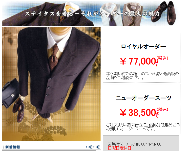 - 特徴:日本製のパーソナルオーダースーツを提供。
