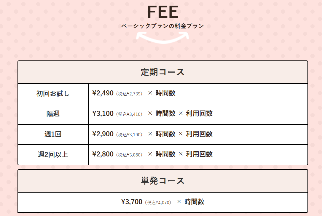 料金: 初回お試しプラン:2時間 4,800円(税込)