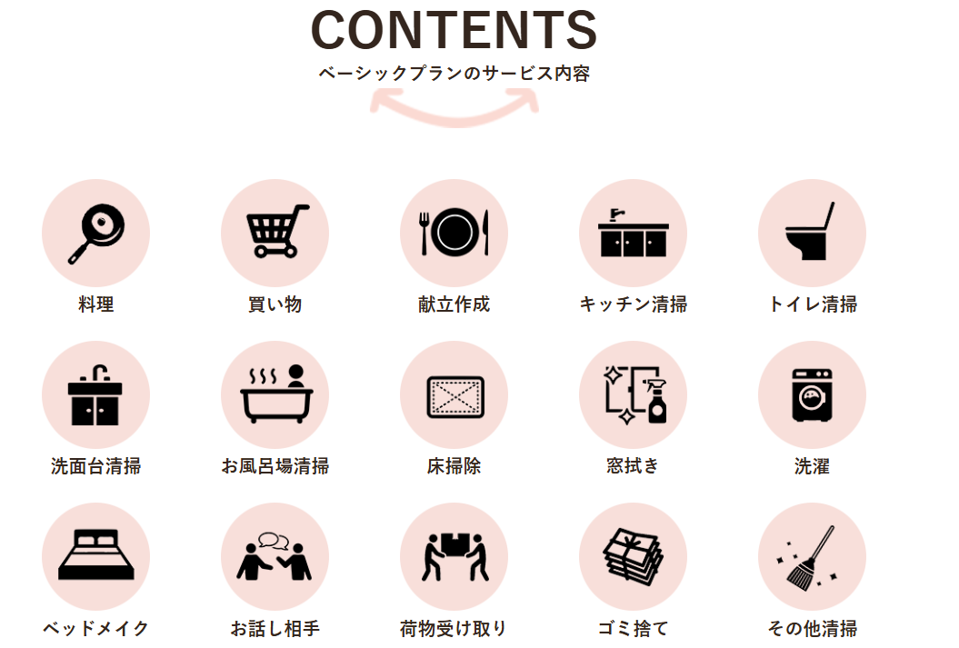- サービス内容が柔軟に選べる(掃除、洗濯、買い物代行など)