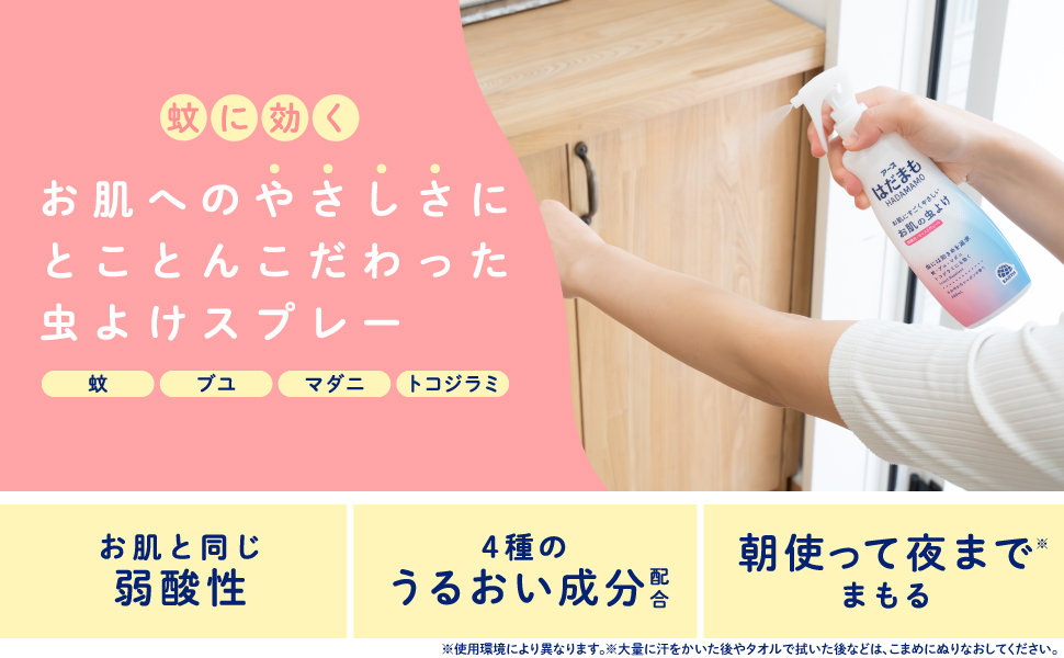 「はだまも」の虫よけミストは、保湿成分が配合されているため