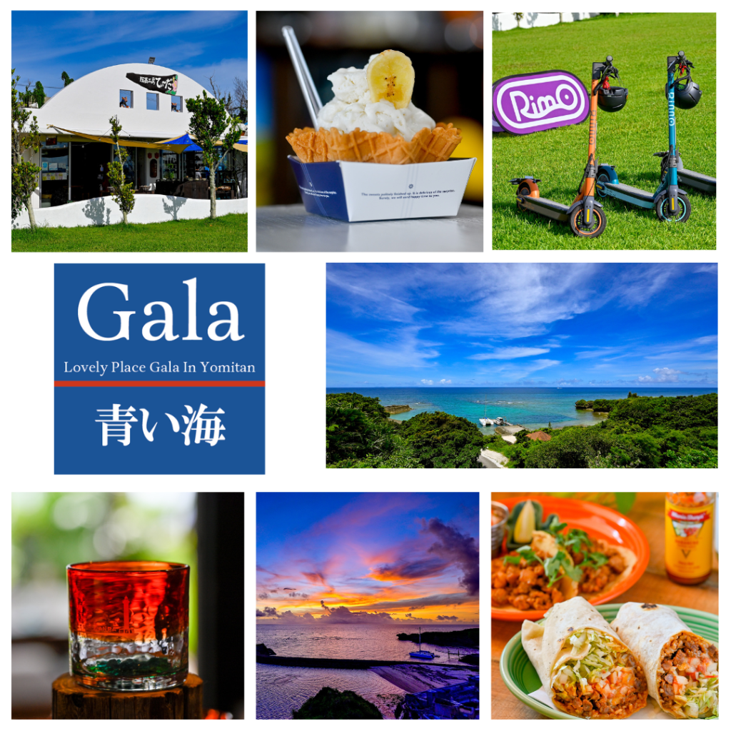 「Gala 青い海(がら・あおいうみ)」は、読谷村にある海沿いの体験型観光スポット。那覇空港から車で約1時間、沖縄本島中部に位置し、美しい海の眺望、沖縄の塩づくり体験、やちむん(沖縄の焼き物)工房、ローカルグルメ、絶景カフェなどがコンパクトに楽しめます。