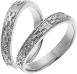 このデザインは、派手過ぎず、おしゃれでありながらも深い意味を持っており、結婚を迎えるカップルにとって理想的です。ミンサー柄を取り入れることで、指輪を見たときに二人の絆の強さと幸せを再確認できるでしょう。