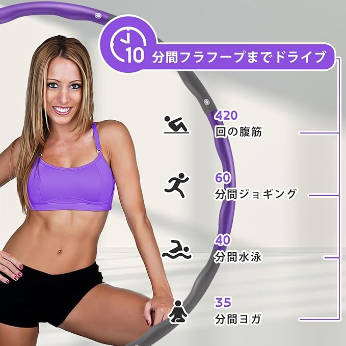 「普通のフラフープよりも安定して回しやすく、長時間続けても腰が痛くなりにくいのが嬉しい。ソファの下にも収納できるのも地味に便利。」