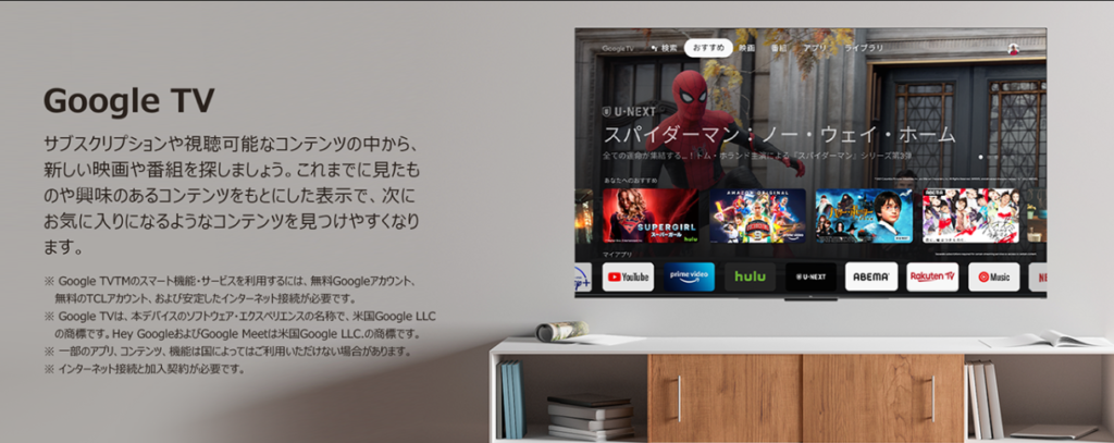 - OS:Google TV(内蔵)