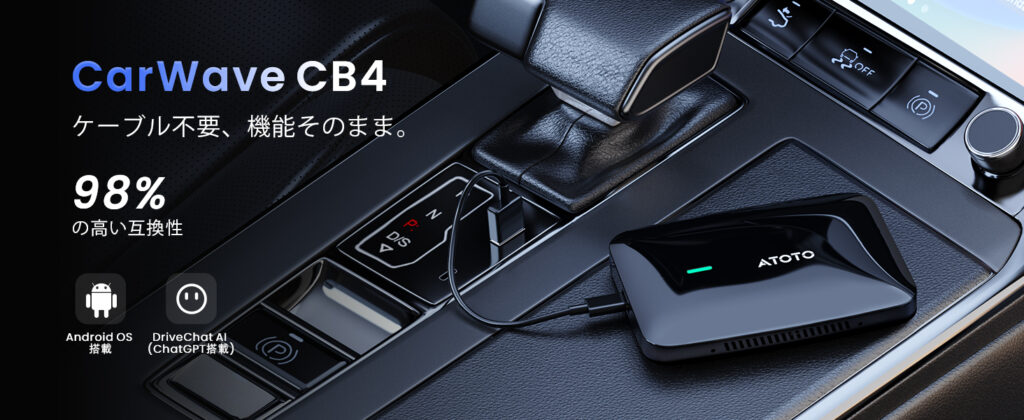 MYATOTOのCB4 CarPlay AI Boxは、手軽に使える価格帯ながら、ワイヤレスCarPlay/Android Autoや動画再生、Bluetooth5.4など多彩な機能を搭載した注目の1台。