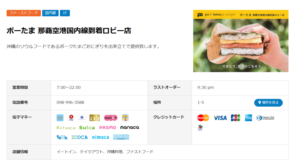 - ポークたまごおにぎり本店(国内線3F)