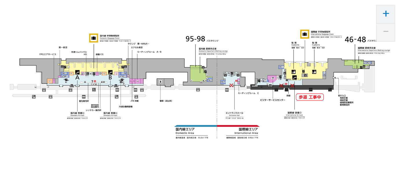 那覇空港のターミナルは以下のように分かれています。
