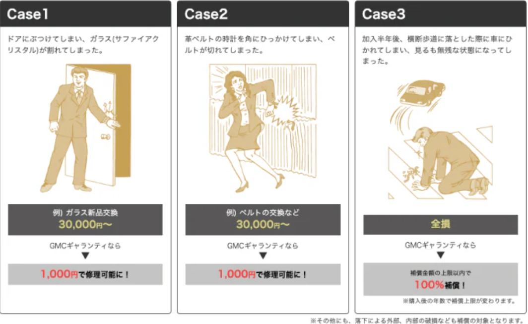 GMC(グローバル・マスター・ケア)などの高級時計専用保険では、特に高額な時計に対する補償を提供しています。