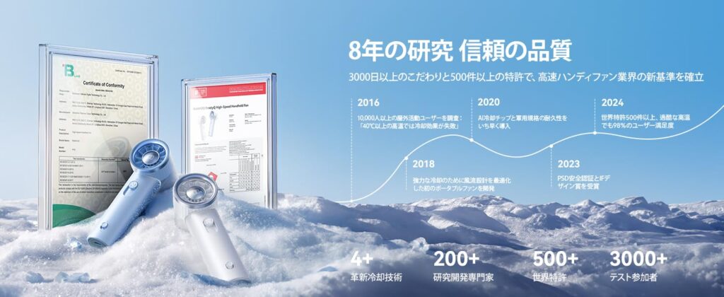 RANVOOの最新ハンディファンは、見た目よし・風量よし・機能よしの三拍子が揃った、“スマートクール”の決定版です。