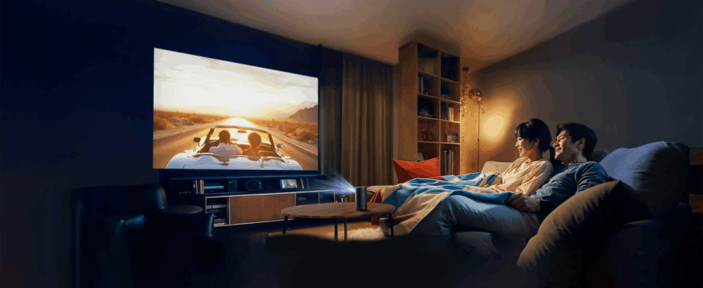 ベッドに寝転びながら天井に大画面を投影できるのがCapsule 3最大の“贅沢”。自動台形補正&オートフォーカスが優秀なので、設置が本当に簡単。初めてのプロジェクターでも迷いません。