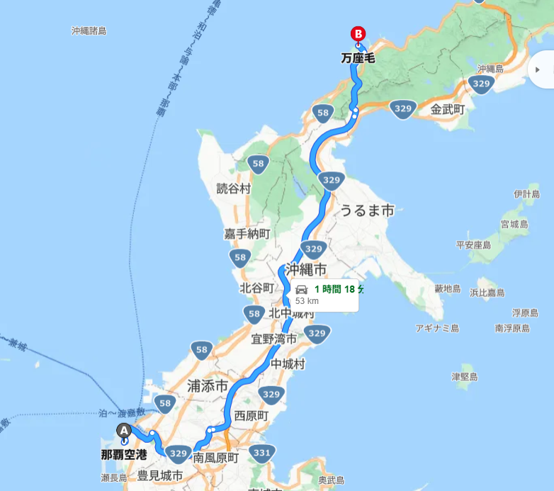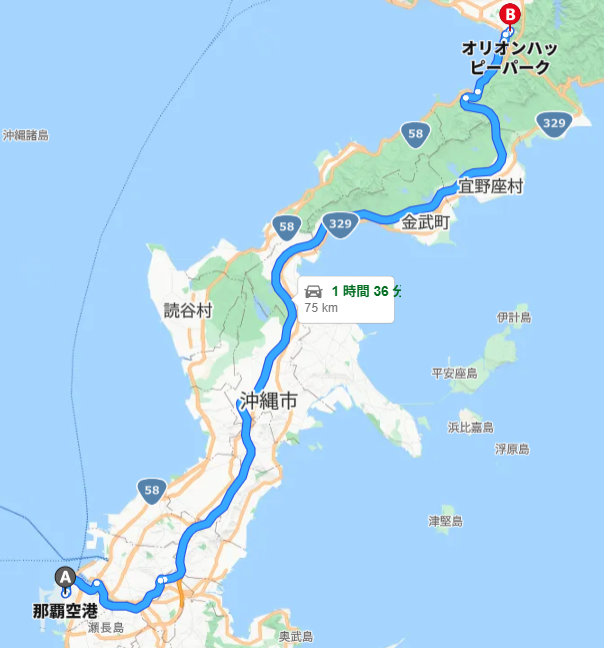 所要:約1時間30分(渋滞時は2時間程度)沖縄地元民ブログ│Okinawa Locals’ blog+3JUNGLIA OKINAWA+3Okinawa Best Hotels+3ジャンノート+8Okinawa Best Hotels+8アクティビティジャパン+8アクティビティジャパン