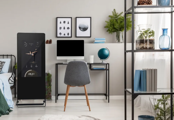 ミニマルなデザインで、お部屋のインテリアに馴染む点も魅力の一つです。使用していない時は、通常の全身鏡として活用可能。スマートデバイスでありながらも、生活空間に溶け込む美しい仕上がりです。