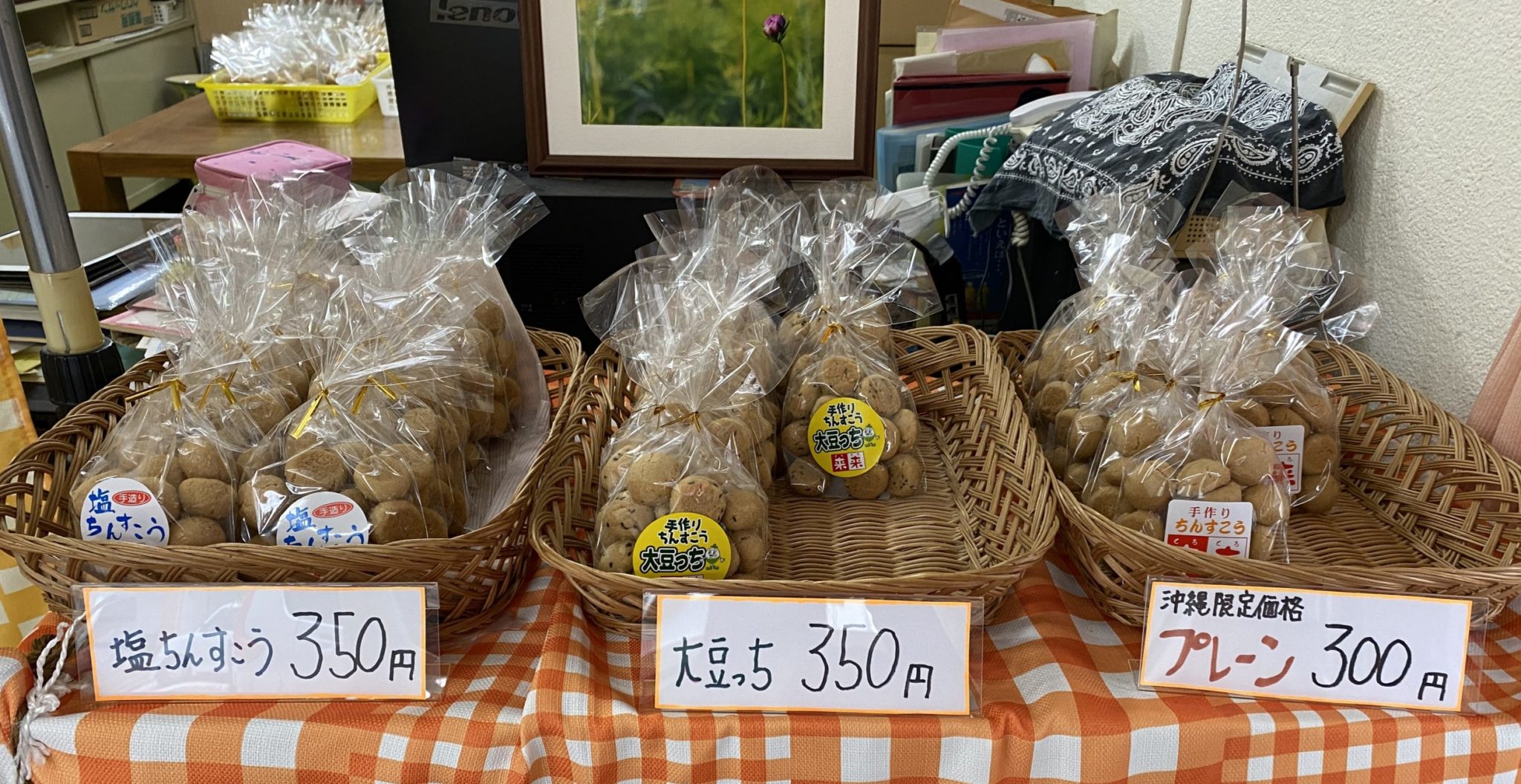 - 出来立てちんすこうを試食可能